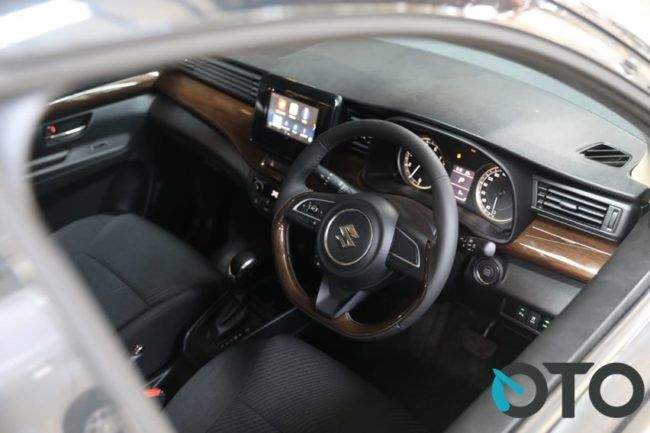 Kabin Ertiga Sport jadi bagian paling menarik lain. Warnanya hitam semua, menggantikan grey dan beige seperti milik Ertiga GX dan GL. Kelir gelap tentu menambah kesan sporty dan tidak mudah terlihat kotor dibanding warna terang. Sejak generasi pertama, kabin Ertiga tidak pernah ada yang hitam. Makanya Ertiga Sport ini makin istimewa.