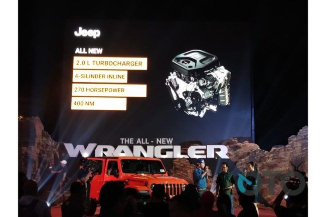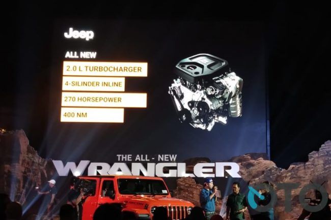 Jantung mekanis Wrangler terbaru dirombak menjadi lebih kecil dibanding generasi sebelumnya. Untuk pertama kalinya, Jeep mengusung turbocharged twin-scroll ke dalam mesin berkapasitas 2,0 liter inline 4-silinder. Wrangler mampu memproduksi tenaga puncak sebesar 272,7 ps dan torsi 400 Nm. Output torsi ini melampaui mesin V6 Wrangler generasi terdahulu, namun punya efisiensi bahan bakar lebih baik.