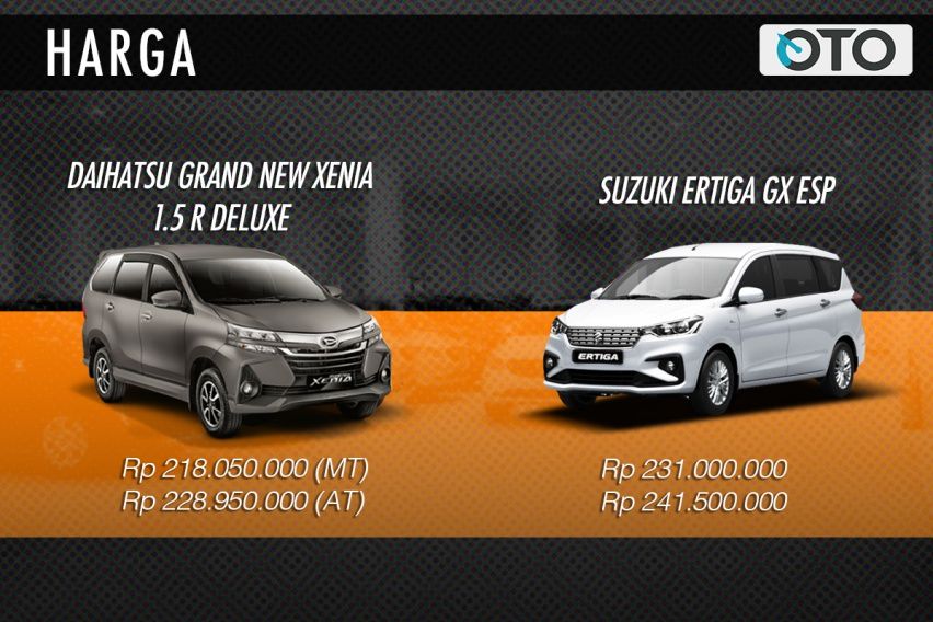 Nah, ini yang membanting Ertiga GX ESP. Grand New Xenia 1.5 R Deluxe dihargai mulai dari Rp 218.050.000 untuk varian transmisi manual 5-speed. Sedangkan versi transmisi 4-speed otomatis Rp 228.950.000. Bandingkan dengan harga Ertiga tertinggi yang mulai dari Rp 231 juta (manual 5-speed). Versi matik dihargai Rp 241.500.000.