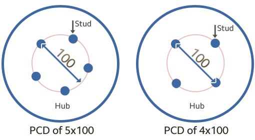 Selain dimensi, Anda juga harus memperhatikan angka PCD (Pitch Circle Diameter) yaitu jarak lubang baut antara satu dengan yang lainnya dengan mengambil acuan ukuran titik terlurus dari masing-masing lubang yang berseberangan. Anda dapat menemukan ukuran PCD pada spesifikasi pelek dengan kode misalnya 4x100 (4 lubang dengan jarak PCD 100 mm). Tak semua velg memiliki ukuran PCD yang sama--beberapa velg juga terdiri dari lebih dari 4 lubang baut--sehingga perlu diteliti agar Anda tidak salah beli.