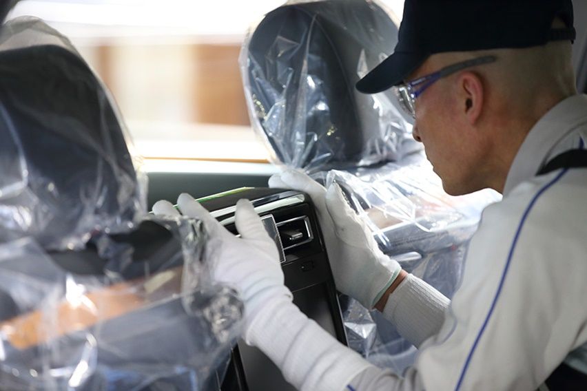 Masuk ke interior, juga dikerjakan oleh tangan. Setiap detilnya tersimak apik dan berkelas. Bahkan, untuk memasang konsol di antara kursi depan, ketepatan tangan sangat dibutuhkan. Tingkat presisinya bukan mengandalkan hitung-hitungan angka. Melainkan menuntut indera sang perakit. Secara perlahan, mereka memutar baut. Tanpa melihat panduan, mereka bisa merasakan sudut kemiringan yang pas. Toyota memyebutnya "kan-kotsu" atau "intuisi dan keterampilan.”
