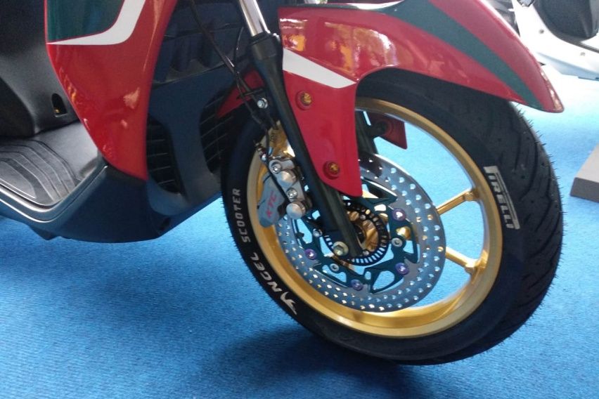 Misalnya ban Pirelli Angel Scooter, rem dan caliper KTC, suspensi belakang Ohlins dan knalpot Arrow. Knalpot ini, mungkin bisa dibilang parts paling mahal yang melekat. Banderolnya menurut Donny jika dihargai mencapai Rp 24 juta.