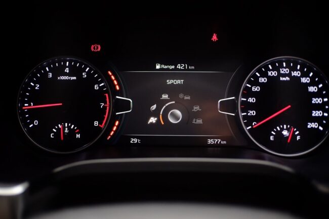 Yang terakhir adalah drive dan traction mode. Sama dengan varian EX Plus, di Kia GT Line juga sudah dibenamkan. Untuk modus berkendara yang dipilih adalah Normal, Eco, dan Sport. Nah khusus untuk opsi Sport, ketika memilih drive mode ini secara otomatis tampilan di panel instrumen juga akan berubah, visualnya akan lebih racy dengan ornamen merah serta adanya informasi RPM yang unik.