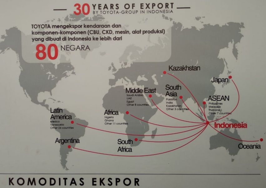 Nah, selain dalam bentuk utuh, TMMIN juga mengekspor kendaraan terurai (Completely Knock-Down/CKD). Sedikitnya ada 25.500 unit, komponen kendaraan sebanyak 54 juta unit, mesin tipe TR sebanyak 26.100 unit dan mesin tipe NR 64.500 unit.