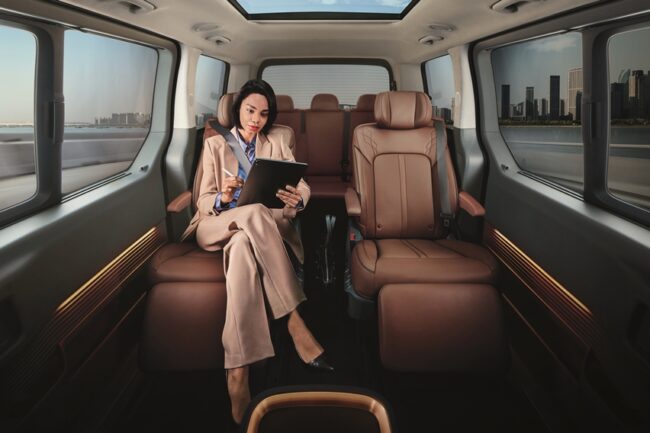 Kabin penumpang jadi arena tersendiri bagi fitur dan kenyamanan yang ditawarkan STARIA. Layaknya sebuah lounge premium, penumpang dapat merasakan kemewahan dan kenyamanan di area ini.