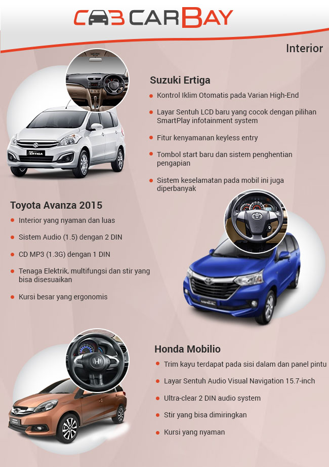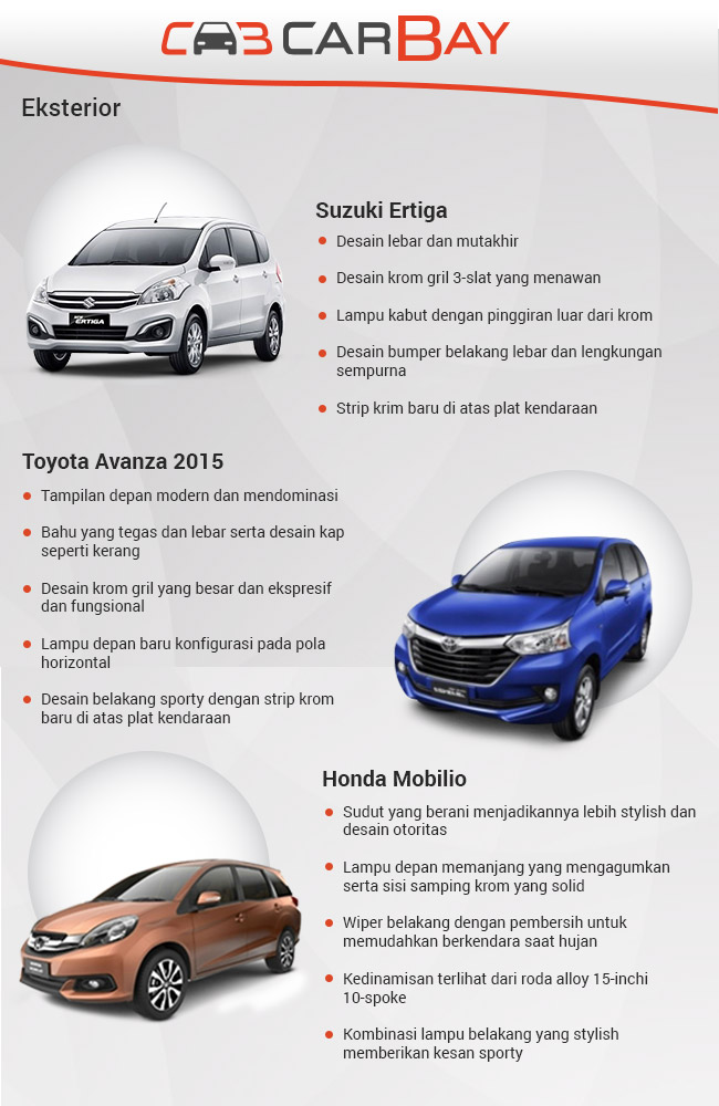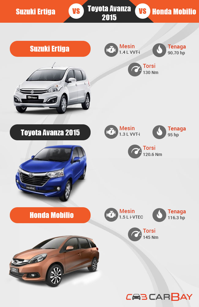 Ditunggu dan dinantikan, Suzuki Ertiga terbaru 2015, berhasil memeriahkan pesta otomotif megah GIIAS 2015. Facelift terbaru dari aset Suzuki populer, Suzuki Ertiga 2015 memang telah siap mentransformasikan semua pujian dan penghargaannya menjadi deretan angka penjualan yang sukses. Mengacu pada data terdahulu, Suzuki Ertiga mampu berkontribusi sebanyak 40% penjualan untuk perusahaannya di Indonesia dan dengan facelift terbaru ini perusahaan membidik pangsa pasar yang lebih besar lagi. Suzuki Ertiga kini berada pada urutan ke 3 untuk segmen MPV di Indonesia, setelah Honda Mobilio dan pemimpinnya, Toyota Avanza. Mari kita lihat apa yang ditawarkan ketiga pesaing asal Jepang ini -