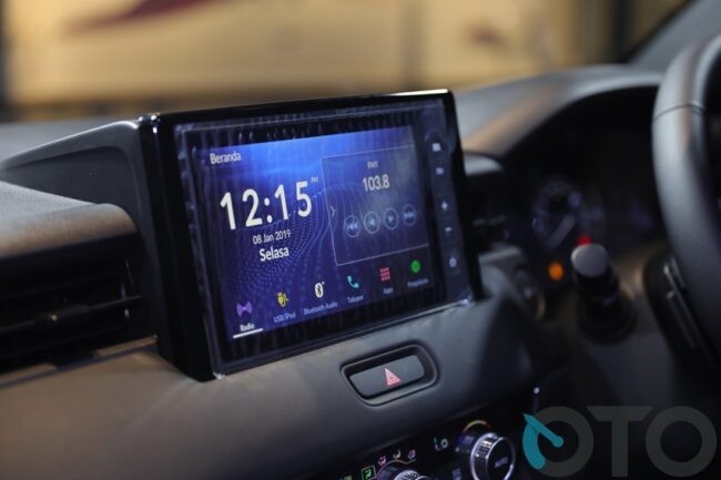 Soal detailnya, pada dasbor sudah hadir layar sentuh tujuh inci yang memiliki kemampuan memutar hiburan radio AM/FM, sambungan Bluetooth, hands-free telephone, voice command switch, USB player, Smartphone connection dengan kabel untuk mirroring yang terhubung dengan empat speaker di selueuh kabin. Pada varian E, lingkar kemudinya sudah dibalut kulit termasuk pada shift knob transmisi. Bagian meter cluster hadir layar TFT 4,2 inci yang berisi beragam informasi kendaraan, ditambah dengan audio steering switch plus telepon di kiri dan cruise control di sebelah kanan, dan paddle shift di bagian belakang kemudi. Jok pada varian E menggunakan bahan kulit dan kain y ang cukup nyaman.