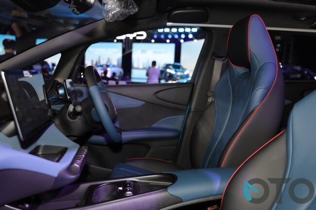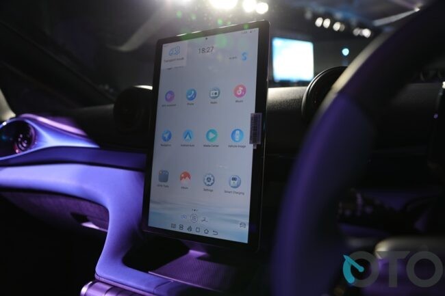 Layar berukuran 12,8 inci seperti perangkat tablet yang ditempelkan. Menariknya juga, layar itu bisa diposisikan vertikal atau horizontal. Menjadi pusat infomasi dan hiburan yang sudah dapat dikoneksikan ke smartphone melalui Apple CarPlay dan Android Auto. Selain itu, layar tersebut juga berfungsi sebagai tampilan dari kamera 360 derajat untuk melihat kondisi di sekitar kendaraan. Tersedia pula beberapa fitur pendukung kesematan seperti ADAS, Hills Descent Control dan Auto Hold.