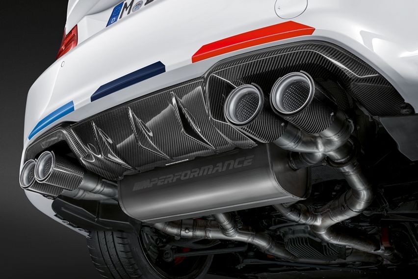 Masih bagian belakang, carbon rear diffuser disuguhkan dalam paket M Performance. Dibikin dari bahan campuran serat karbon dan plastik (carbon fibre reinforced plastic/CFRP), komponen seharga Rp 24,05 juta itu membantu mengalirkan udara dari bawah, sehingga mobil semakin aerodinamis.
