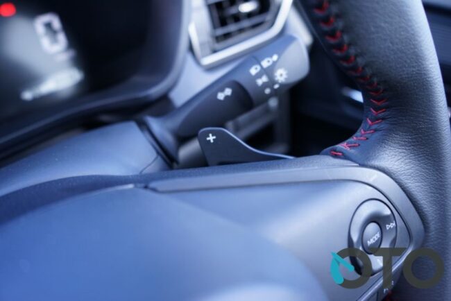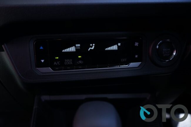 Bagian kabin juga dikuatkan kesan sporty. Toyota memberi beberapa sentuhan signature GR Sport. Seperti dark silver ornament color di kisi-kisi AC, GR Sport logo dan red stitch di bangku depan maupun bagian bawah kemudi sudah berbahan kulit sintetis. Terus, ada floor mat, serta leather shift knob. AC dan meter cluster sudah digital & head unit mengambang 7 inci mendukung banyak sambungan. Paling menarik, dibalik setir tersisip paddle shift untuk mengatur perpindahan gigi virtual.