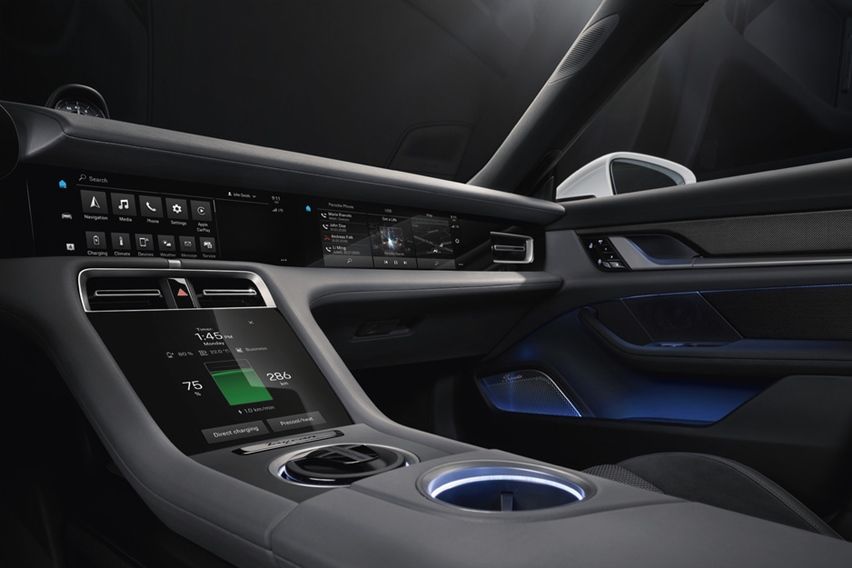 Bergeser dari kokpit, ada dua display 10,9 inci yang membentang dari tengah dasbor sampai penumpang depan. Ketika salah satunya dimatikan, seketika ia terkamuflase dengan baik bersama dasbor. Lewat perangkat ini, pengguna bisa mengakses multimedia atau aplikasi lainnya, seperti dilansir dari keterangan resmi Porsche.