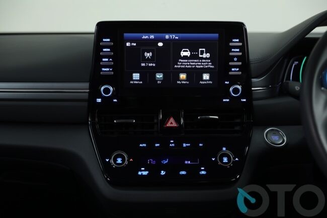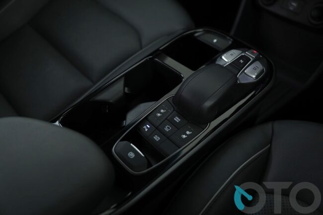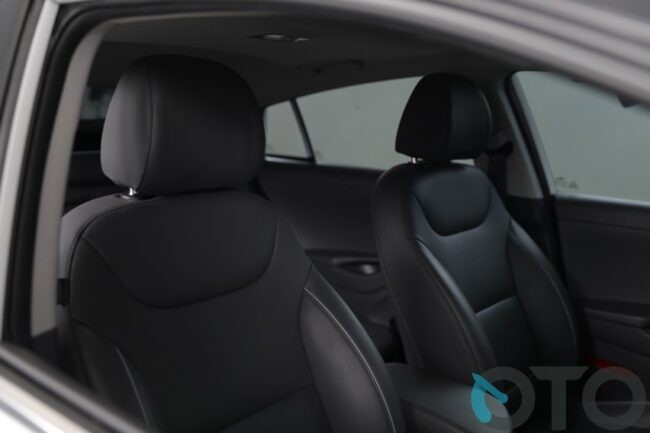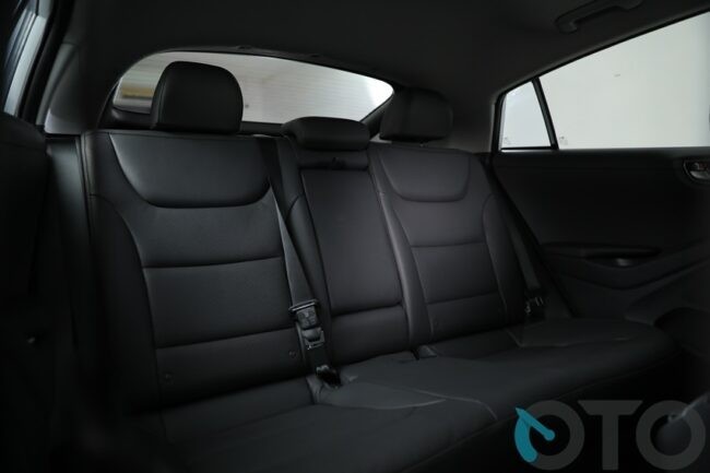 Begitu masuk kabin, sedikit berbeda. Memang susunannya jamak, namun Anda seolah berada dalam sebuah ruangan masa depan. Interior Ioniq Electric didesain sederhana tapi mampu menampilkan kesan sporty dan futuristis. Layar besar berukuran 8 inci berada di tengah dashboard. Semua tombol peroperasian serba sentuh. Bahkan, jika Anda tak biasa, bakal heran karena sama sekali tak ada tuas persneling seperti mobil umumnya. Tugas perpindahan transmisi menggunakan tombol. Berada di konsol tengah antara pengemudi dan penumpang depan. Ada tombol R (reserve), P (netral), D (drive), dan P (park). Hyundai menyebutnya shift by wire.