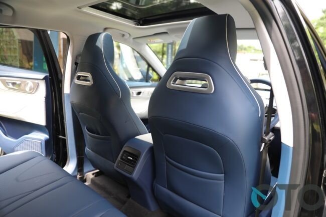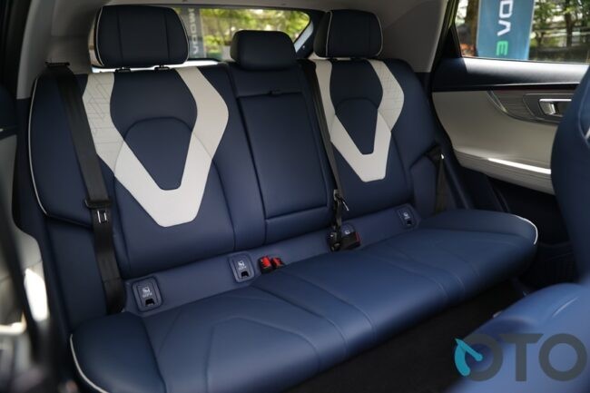 Kemudian untuk fiturnya, kursi depan sudah berventilasi dan bisa diatur secara elektrik. Sementara kursi belakang tidak bisa diubah posisi sandarannya. Konsol tengah di depan punya banyak tempat penyimpanan. Termasuk ruang dengan fitur pendinginan, cup holder, dan tray untuk wireless fast charging smartphone 50 Watt. Di bawahnya, ada ruang untuk menaruh sejumlah barang kecil. Terdapat port USB type A untuk konektivitas ke infotainment dan type C sebagai sarana isi daya smartphone. Plus, soket listrik 12V.