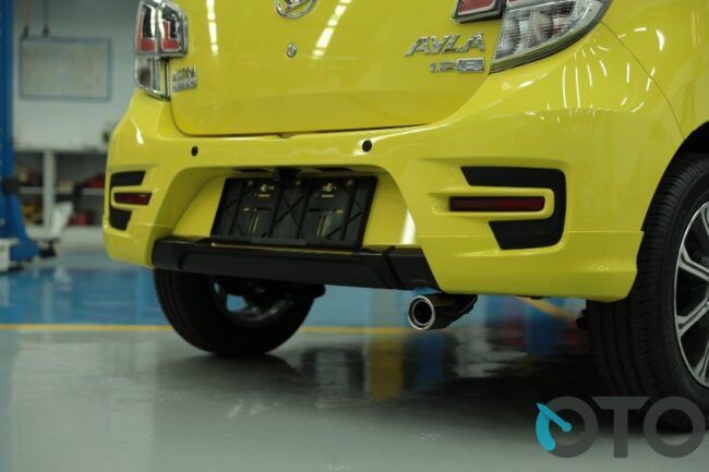 Meski begitu, dari grille hingga bentuk bumper berubah total. Ayla yang tadinya memakai dua aksen palang krom, kini hampir semua dihitamkan. Bentuknya juga bukan lagi kisi-kisi, melainkan dua panel yang menyisakan sedikit ruang untuk aliran udara. Lengkap dengan imbuhan lima garis vertikal ala mobil performa.