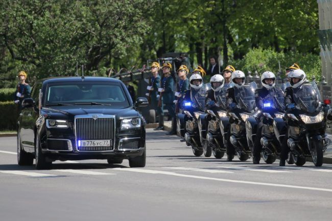 Balik lagi ke Aurus Senat. Limosin antipeluru ini dibekali mesin berkapasitas 4,4 liter V8 yang dikembangkan oleh NAMI bersama Porsche. Tenaga sebesar 600 PS digunakan untuk menggerakkan mobil yang memiliki panjang lebih dari 6,7 meter dan berat 6,3 ton itu. Mobil ini diterbangkan ke Helsinki beberapa hari sebelumnya, menggunakan pesawat Ilyushin Il-76.