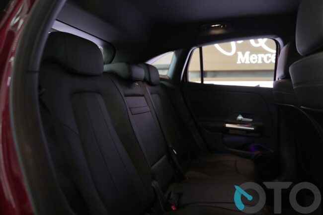Interior GLA mencirikan hubungan darah dengan keluarga kompak Mercedes Benz. Dasbor bertumpuk dinamis memadukan garis lurus dengan elemen lingkaran. Seperti kisi AC yang menghembuskan aliran udara sejuk dari lubang berbentuk turbin – mengadopsi sistem otomatis satu zona. Di permukaan dasbor lalu bertengger dua layar 10,25 inci dalam satu bingkai horizontal. Memanjang dari tengah ke sisi berisi sistem multimedia dan panel instrumen.