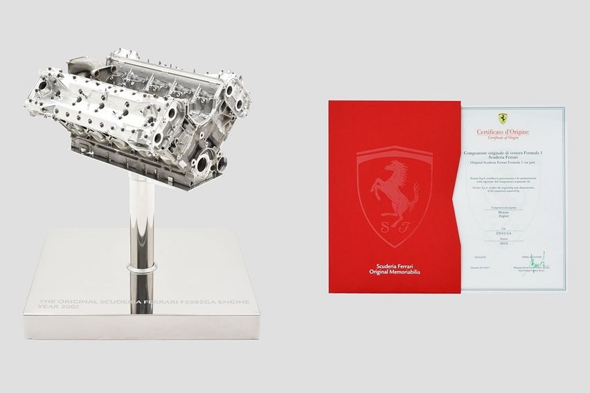 Mesin mobil balap Formula 1 milik Ferrari dilelang untuk umum. Berkode Tipo 051/B/C, ialah jantung mekanis yang dipakai pada F2002. Mobil ini pernah membawa Michael Schumacher dan Rubens Barrichello menang 15 kali dari 17 balapan pada musim 2002.