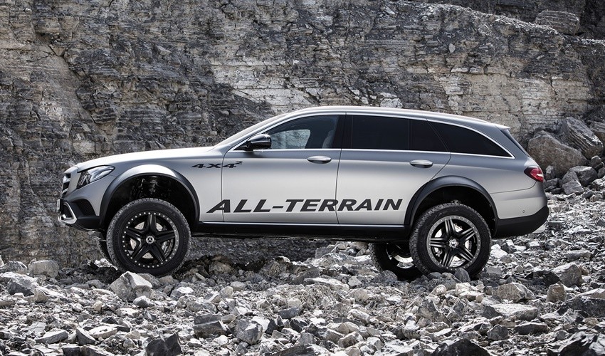 Diberi nama E-Class All Terrain 4x4², mengusung filosofi sama seperti dilakukan pada G500 4X4² dan G63 6x6. Adalah Jurgen Eberle, seorang insinyur di pengembangan kendaraan khusus E-Class, memulai proyek ini sejak 6 bulan lalu. Ia ingin membangun sesuatu yang benar-benar sesuai nama All Terrain itu. Langkah pertama dilakukan dengan menaikkan ground clearance setinggi 40 milimeter, memasangkan ban off-road gambot dan membesarkan fender. Tak berhenti sampai di situ, Eberle membenamkan kaki-kaki gardan portal atau portal gear dari G500 4x4², yang membuat kuda-kuda sedan station keluarga ini menjulang tinggi.