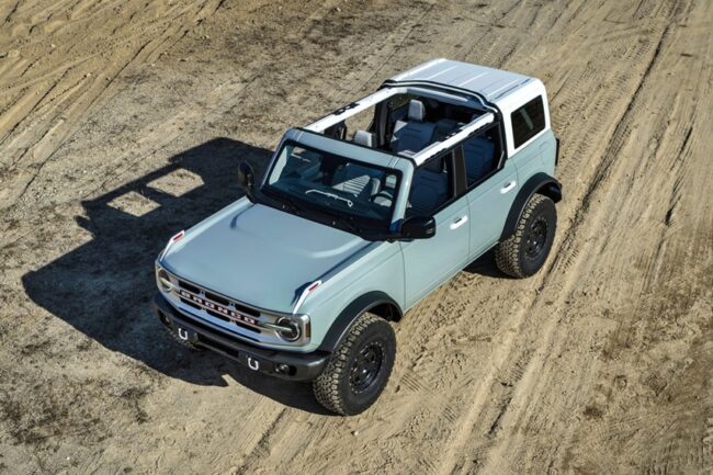 Fleksibilitas tinggi. Maksudnya, tubuh Bronco mudah dilepas-pasang untuk menyesuaikan kebutuhan. Standar model dua pintu dibekali hardtop terpisah yang terbagi atas tiga bagian: dua panel depan dan satu panel menutup sisanya. Terdapat pula opsi modular dengan ekstra panel terpisah untuk penumpang belakang dan area kargo. Sementara itu, komponen standar di model empat pintu berupa soft top - atap keras menjadi barang opsional.