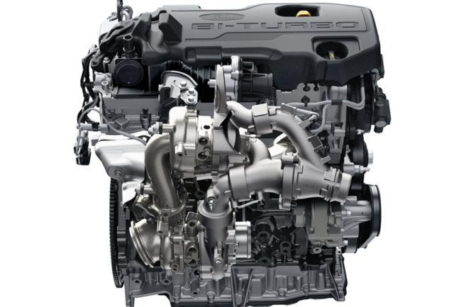 Ford menjelaskan, output besar salah satunya berasal dari intake manifold yang dibesarkan. Hal ini juga untuk mengantisipasi dua buah turbonya. Mereka mengakali adanya dua ‘rumah keong’ itu dengan menyatukan turbocharger kecil tapi bertekanan tinggi dan turbocharger yang lebih besar. Saat kecepatan rendah, kedua turbo bekerja secara bersama-sama untuk menyediakan torsi besar. Ketika butuh peforma lebih cepat, turbo kecil dinonaktifkan dan bergantung pada turbo besar saja.