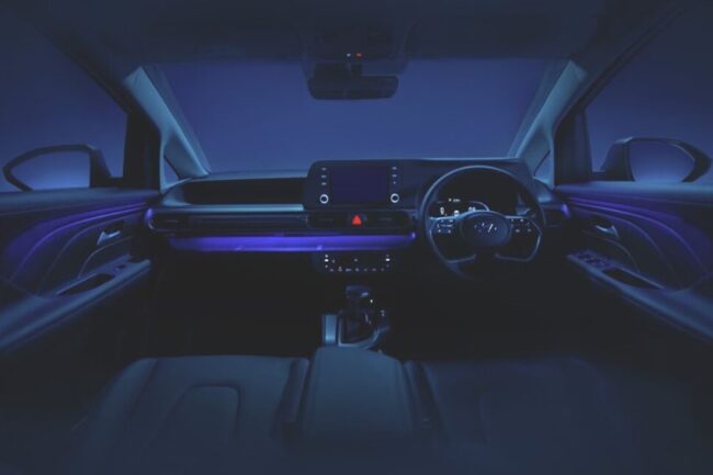 Dari bocoran gambar tersebut juga memperlihatkan desain lingkar kemudi yang menyerupai model Staria. Beberapa tombol pengaturan audio serta kemungkinan hadirnya fitur Hyundai Smartsense pada low MPV ini. Fitur canggih ini terdiri dari beberapa kemudahan seperti forward collision avoidance assist, blind spot collision avoidance assist, blind spot view monitor, lane keeping assist, lange following assist, dan rear cross traffic collision avoidance assist.