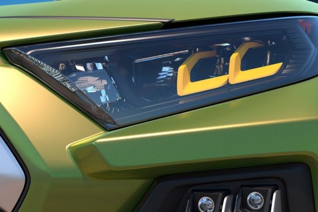 Desain wajah depan menyiratkan penampilan Toyota Tacoma. Terbaca jelas dari desain lampu utama dan grille besar gagahnya. Lampu berbentuk empat persegi, bisa dilepas dan berubah fungsi menjadi lampu portable. Fungsinya sama seperti yang ada di FT-4X.