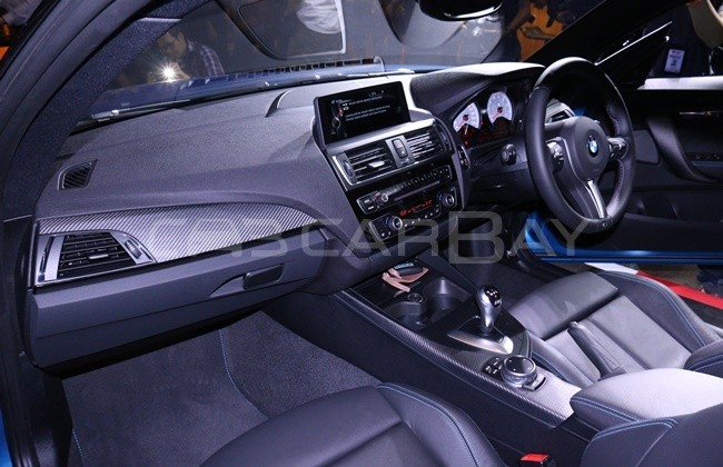 Pada bagian interior, ia tampil tak seekstrem M3 dan M4 dalam menampilkan kesan mobil balap. Tak ada jok bucket seat yang sporti, hanya ada jok semi bucket seat masih dengan headrest terpisah namun dengan sokongan di bagian sisi untuk mengapit badan.