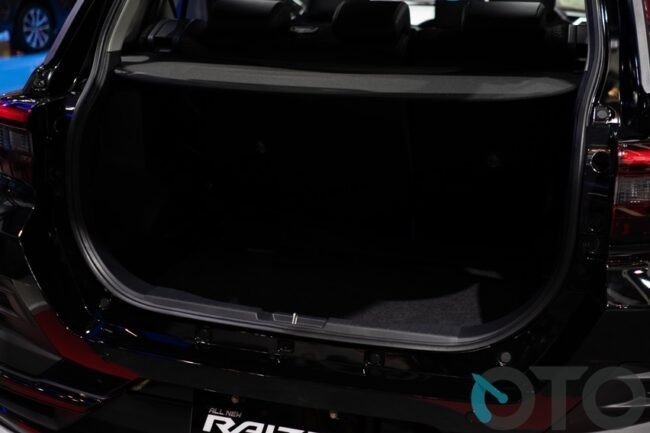 Interior Raize GR Sport menawarkan 5-seater namun dioptimalkan untuk bisa tetap menawarkan ruang lega. Kursi belakang yang dapat dilipat rata ke depan untuk memastikan kapasitas bagasi yang lapang. Juga kemudahan mengatur ketinggian dek bagasi untuk memudahkan akses dan memberikan pilihan daya angkut yang maksimal.