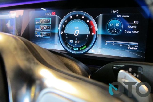 Metode semacam ini bisa disebut sebagai mild hybrid. Kuncinya ada di alternator-starter yang menghimpun energi dari proses deselerasi ke dalam baterai 48 V. Letaknya berada di antara mesin dan transmisi. Tidak hanya berperan sebagai motor starter, melainkan juga motor pembantu untuk mesin. Jadi motor tidak berperan tunggal menggerakkan roda layaknya hybrid murni. Kalau proses semacam itu, ada di EQ Power. MBDI sudah memperkenalkan teknologi ini lewat E 350e saat IIMS 2018, dan siap menjualnya sembari menunggu regulasi pemerintah.
