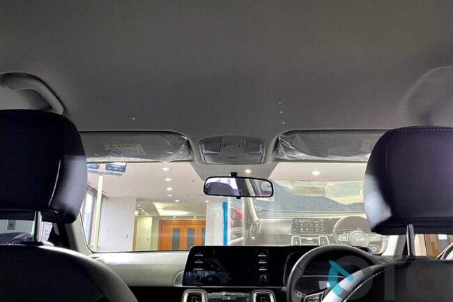 Oke, satu pembeda utama bikin Sonet Smart jadi lebih hemat adalah pemangkasan sunroof. Anda tidak akan bisa menikmati sensasi tambahan rasa lapang – atau elemen peningkat gengsi – dari jendela di atap. Kendati begitu, tipe Smart tidak lantas dibuat bergaya polosan. Komposisi eksterior bahkan boleh dibilang lebih menarik lantaran mengadopsi kombinasi warna two tone hitam dari pilar A hingga ke batas pilar D. Tak ketinggalan pula spion elektris digebyur cat senada atap.