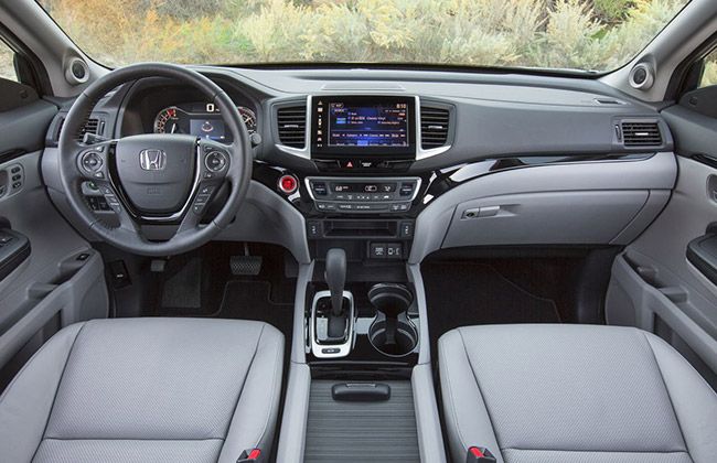 Edisi baru Honda Ridgeline pikap cukup lapang pada bagian dalam dan luar dengan jok nyaman untuk 5 penumpang dan ruang selebar 4-kaki di belakang. Kabin Honda pick up 2017 ini diberi gaya dengan corak hitam di semua interiornya untuk kesan sporty. Kokpitnya dilapisi dengan pembungkus jok mewah, fasilitas AC otomatis, aksesoris krom di konsol tengah, kemudi berlapis kulit, dan jok model power adjustable. Nilai benturan teratas menjamin ketentraman pikiran selagi mengendarai kendaraan ini di medan apapun.
