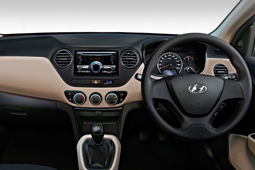 Penerangannya memakai multi proyektor dengan bohlam halogen. Perangkat ini dipadukan fog lamp, agar semakin jelas dan daytime running light (DRL) untuk memberikan informasi posisi Grand i10 kepada pengemudi lain. Wajah depannya tetap didominasi grille dengan pola honeycomb (sarang lebah). Spion sampingnya dapat diatur arahnya secara otomatis melalui tombol di dalam kabin.