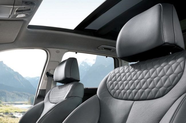 Penambahan fitur di interior, menjadi bagian paling menarik dari Hyundai Grand Santa Fe. Begitu masuk ke kabin, disambut jok kulit dengan motif baru warna dark beige dan black. Pengaturan jok elektrik yang hanya untuk kursi pengemudi di tipe XG, kini ditambahkan untuk penumpang depan. Kaca spion dalam menjadi jenis Electrochromatic Mirror (ECM). Pantulan cahaya secara otomatis diredam agar tidak menyilaukan mata pengemudi.