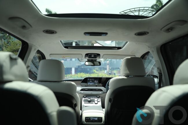 Karena kenyamanan diperuntukkan bagi seluruh baris kursi, maka sistem pengaturan AC juga terbagi untuk tiga zona yang bisa dikontrol otomatis. Anda bisa mengatur dengan kontrol independen dan cluster Ionizer untuk memastikan kenyamanan maksimal di seluruh kabin mobil. Tak luput, kursi baris pertama maupun kedua dilengkapi heated & ventilated seats.