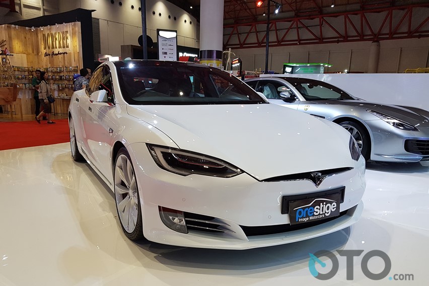 Menyeberang ke Hall B, ada mobil super lain yang tak kalah unik. Tesla P100D yang duduk manis ditemani Ferrari GTC4 Lusso T di booth lain yang juga milik Prestige Image Motorcars. Karya Elon Musk ini adalah mobil listrik berpenggerak AWD (All-wheel Drive) yang menghasilkan output 789 PS dengan torsi puncak 931 Nm. Mobil ramah lingkungan ini, mampu melesat dari posisi diam sampai 100 kpj dalam tempo 2,3 detik saja.