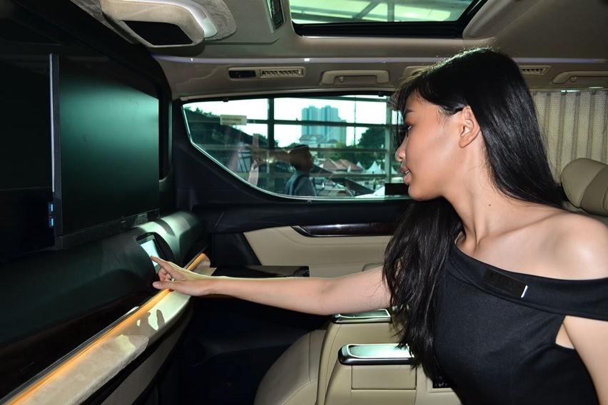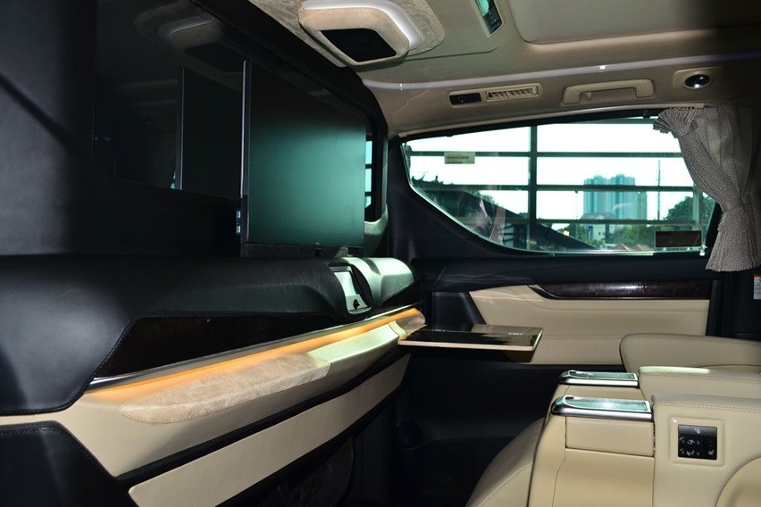 Tertanam layar monitor 24-inci yang dapat memutar digital TV. Monitor raksasa itu diletakkan tepat di depan kursi baris kedua, memisahkan ruang antara penumpang belakang dengan pengemudi. Selain lebih mewah, ubahan ini juga menambah privasi bagi penumpang belakangnya. Untuk komunikasi dengan pengemudi, tersedia intercom.