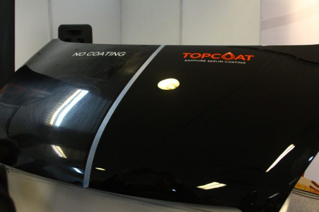 Dengan bahan serum sapphire, diklaim permukaan coating setelah matang menjadi sangat licin dan menjadikan material kotor seperti minyak, kotoran burung, getah pohon, lumpur dan debu tidak mudah menempel. Fitur itu disebut super oleophobic. Ada lagi super hydrophobic yang menjadikan permukaan antiair sehingga air yang menyentuh bodi menjadi butiran, bak air di daun talas. Hasilnya, permukaan bodi lebih terjaga dari jamur dan cuaca panas. Bahkan diklaim juga Topcoat bisa menahan panas api dan tidak meninggalkan bekas pembakaran.