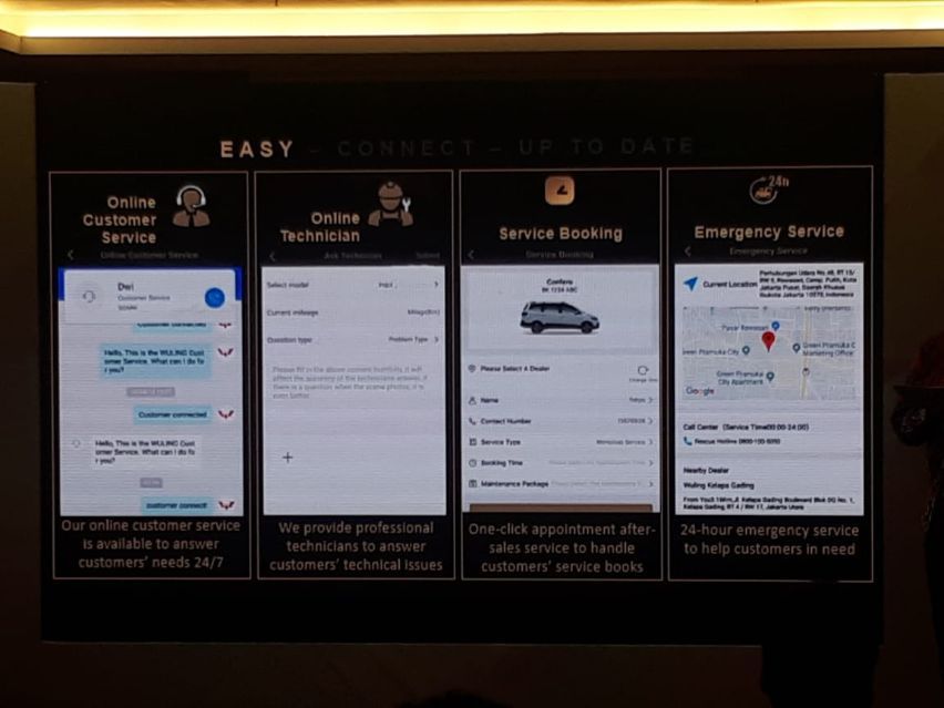 Di dalamnya terdapat berbagai fitur inovatif. Pertama Online Customer Service yang memiliki keunggukan, yakni bisa melakukan percakapan via chat. Konsumen dapat mengaksesnya 24 jam. Selain itu ada Online Technician untuk berbincang dengan teknisi profesional terkait kendala teknis. MyWuling+ juga dapat digunakan sebagai media Service Booking. Bahkan layanan Emergency 24 jam yang bisa diakses kapan saja saat mengalami kondisi darurat.