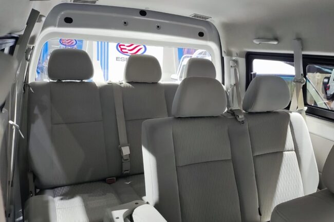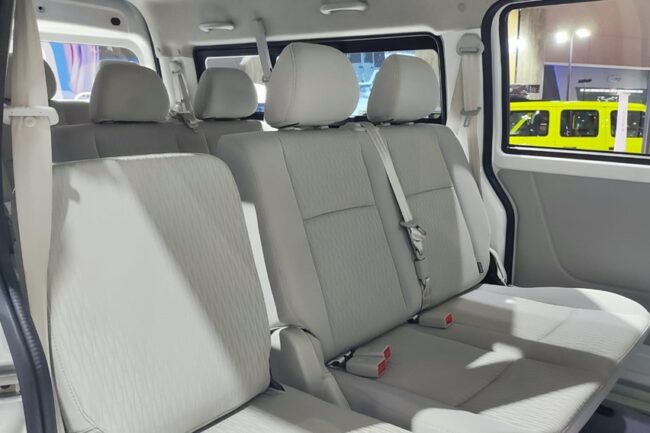 Lalu di bagian bawah ada ventilasi udara. Terus bukaan pintu baris kedua model geser untuk mempermudah akses masuk keluar. Hal ini juga mirip kepunyaan DFSK Gelora E. Dan bukan perkara sukar untuk mengubah bak belakang menjadi beratap. Sehingga bisa mengangkut banyak penumpang maupun barang. Untuk ukuran. Mobil memiliki panjang 4.495 mm, lebar 1.680 mm, tinggi 1.990 mm dan jarak sumbu roda 2.925 mm. Sedangkan ground clearance 165 mm. Ukuran pelek 14 inci serta profil ban 175/65. Bobot maksimal 2.350 kg.