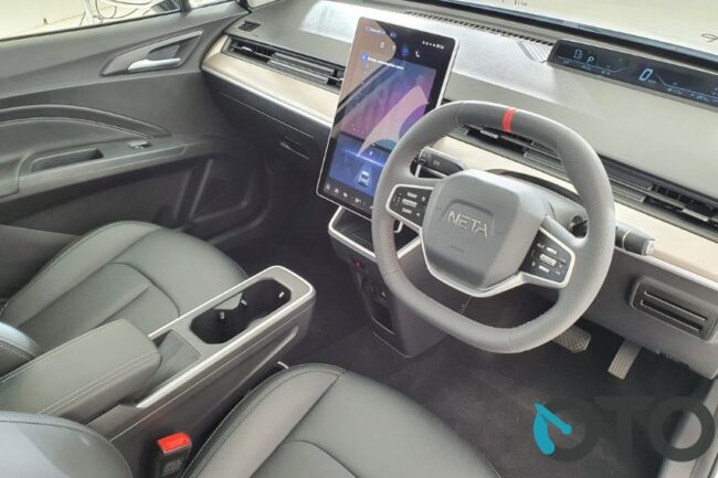 Meter cluster monokrom 12 inci juga tetap hadir sebagai desain khas Neta V. Tambahan kenyamanan ada pada jok yang kini berbahan kulit, armrest dengan cup holder, AC dengan filter HEPA N95, dan wireless charger di bagian bawah head unit.