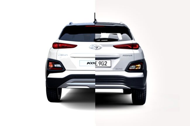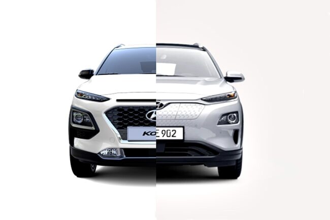 Dari luar, pada dasarnya Hyundai Kona bukan sebuah crossover dengan gaya moderat. Ia tampil nyentrik di jalanan, apalagi di versi elektrik. Moncongnya dibikin rata tanpa rongga grille sehingga terkesan futuristis. Sekaligus juga menjadi pembeda dengan model konvensional. Namun di samping itu, guratan tubuh dan permainan cladding khas tidak dilunturkan.