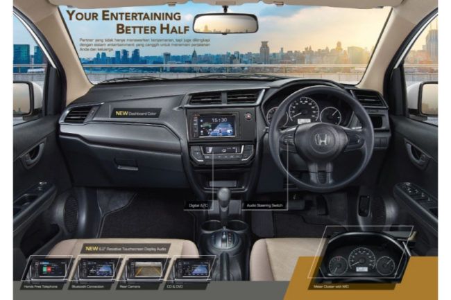 Kabinnya ditransformasi makin elegan dengan two tone black dan ivory. Pelapis jok bermaterial kain juga punya motif baru yang melengkapi keseluruhan penampilan. Guna menunjang kenyamanan pengemudi, head unitnya ikut dirombak. Layar sentuhnya berukuran 6,2 inci resistive dengan kelengkapan Bluetooth dan hands free telephone.