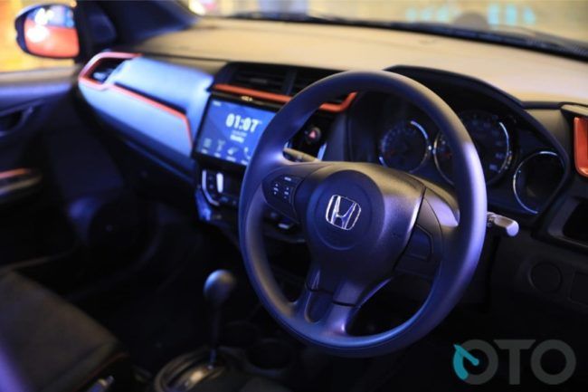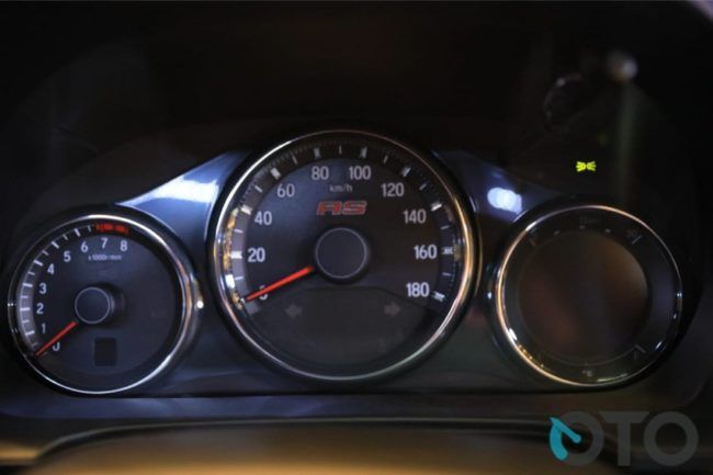 Memasuki kabin, suguhan atraktif terlihat pada desain interiornya. Dashboard dan area doortrim diihiasi aksen garis oranye. Meski tak seberapa, tapi Honda sukses memberikan nuansa yang berbeda. Lalu layar sentuh di tengahnya capacitive 8 inci berfitur Bluetooth, hands free telephone dan smartphone connection. Pengemudi turut disuguhi meter cluster baru, dengan logo RS yang menampilkan informasi lengkap terkait kendaraan. (Hfd/Van)