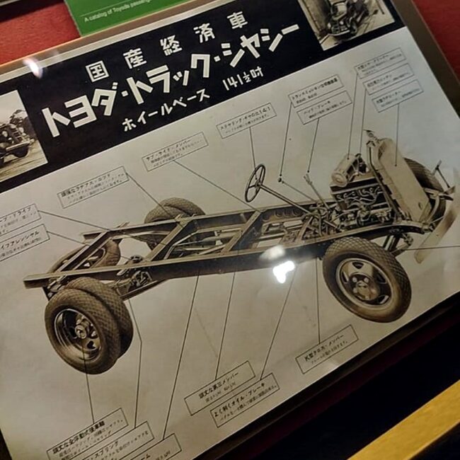 Begitu juga dengan rangka dan bodi, tak luput dari riset tim. Untuk bodi, mereka mencontoh produk DeSoto Airflow yang sangat melegenda. Hingga Kiichiro dan tim berhasil membuat prototipe Model A1 pada 1935 yang nantinya jadi mobil penumpang pertama rilisan Toyota. Tapi kendaraan pertama yang mereka jual adalah truk pikap Toyoda Model G1 yang juga lahir pada 1935. Menggunakan rangka ladder-frame Model A1 yang dipanjangkan dan mesin Tipe A baru. Oh ya, namanya masih Toyoda ya, belum jadi Toyota. Truk ini punya nilai histori yang penting, selain sebagai kendaraan produksi pertama, juga model pertama yang diekspor. Dari keuntungan penjualan, mendorong produksi selanjutnya yakni sedan Toyoda Model AA dan bus Model DA.