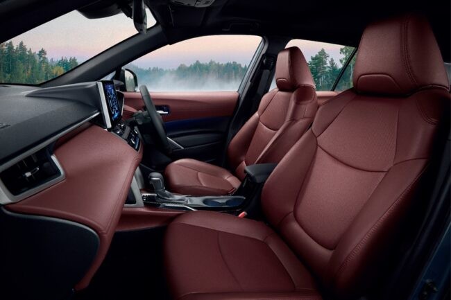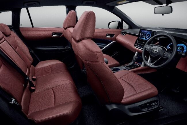 Berkaca pada dimensi tubuh, Corolla Cross mendekati ukuran SUV monokok yang beredar di Tanah Air. Karakteristiknya mirip Mazda CX-5, sanggup mengakomodir 5 penumpang saja dengan bagasi ekstra. Nuansa sederhana nan futuristis hadir dalam kabin, sekaligus dirancang mewah. Tidak banyak kesibukan di dasbor. Set sistem infotainment 9 inci dan kontrol AC melekat elegan, terbungkus finishing hitam mengilap di center stack. Material kulit diaplikasikan sebagai pembungkus bangku, setir, dan tuas transmisi.