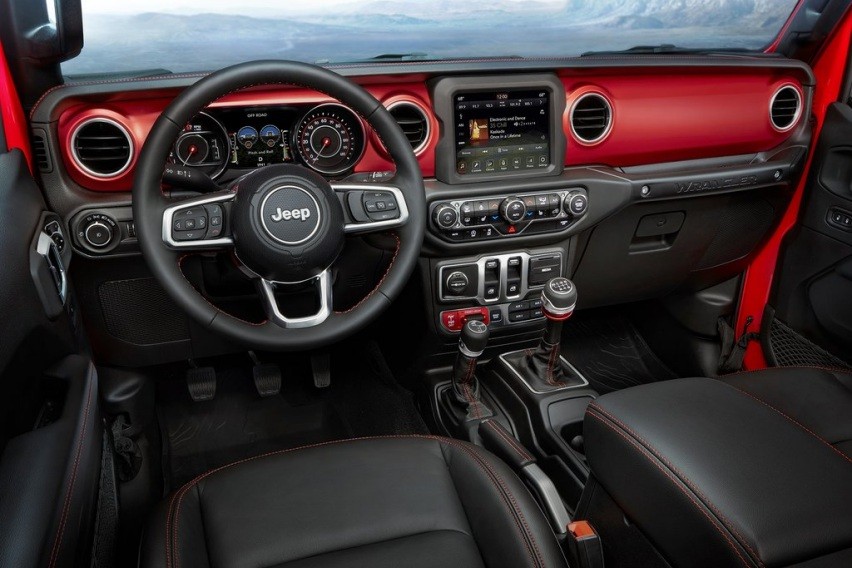 Interiornya mendeskripsikan suasana modern dengan tampilan retro yang tangguh. Desainer Jeep mengungkap, butuh ongkos lebih besar bila menggunakan material karet dan besi asli untuk berbagai tombol fungsi. Jadinya memang terlihat keren dan yang pasti tetap waterproof. Semua varian memakai tombol engine start/stop dan instrument cluster berupa monitor video full-color. Di tengah dasbor ada pusat hiburan berupa layar sentuh Uconnect berukuran 8,4-inci. Di bawahnya ada Media Center sebagai pusat koneksi USB 2.0 dan port Micro USB.