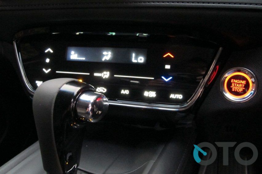 Fitur penyejuk kabin HR-V pun berkelas. Ingin mengimbangi desain interior mewah dan sarat fitur canggih, Honda enggan memasang panel AC dengan kenop putar. Terpasang panel AC digital yang dioperasikan secara layar sentuh (touchscreen). Kekuatan semburan angin pun bisa diatur secara otomatis. Ada juga pilihan embusan udara ke kaki. Cuma memang AC digital yang otomatis ini belum dual zone. Juga lubang AC bagian depan yang terletak persis di hadapan penumpang depan, mungkin terasa kurang nyaman bagi sebagian orang.