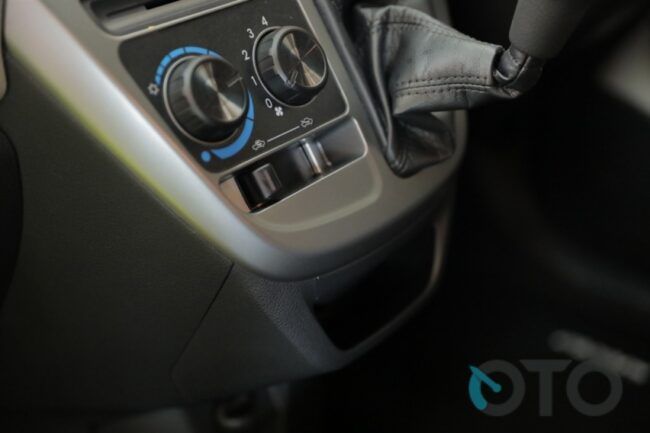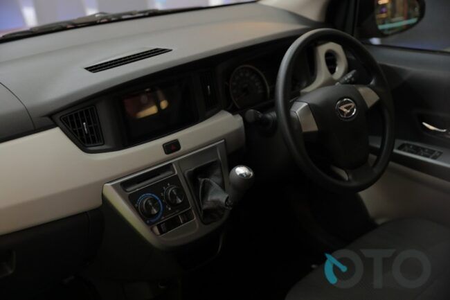 Lagi, khusus tipe R, head unit baru layar sentuh. Ukurannya tak terlalu besar, tapi bisa terhubung dengan Bluetooth dan USB. Bahkan, karena sudah memakai layar besar, bisa menampilkan tangkapan kamera parkir mundur. Menariknya lagi, ada guide line pada kamera itu. Kamera parkir mundur termasuk fitur mewah buat kelas LCGC.