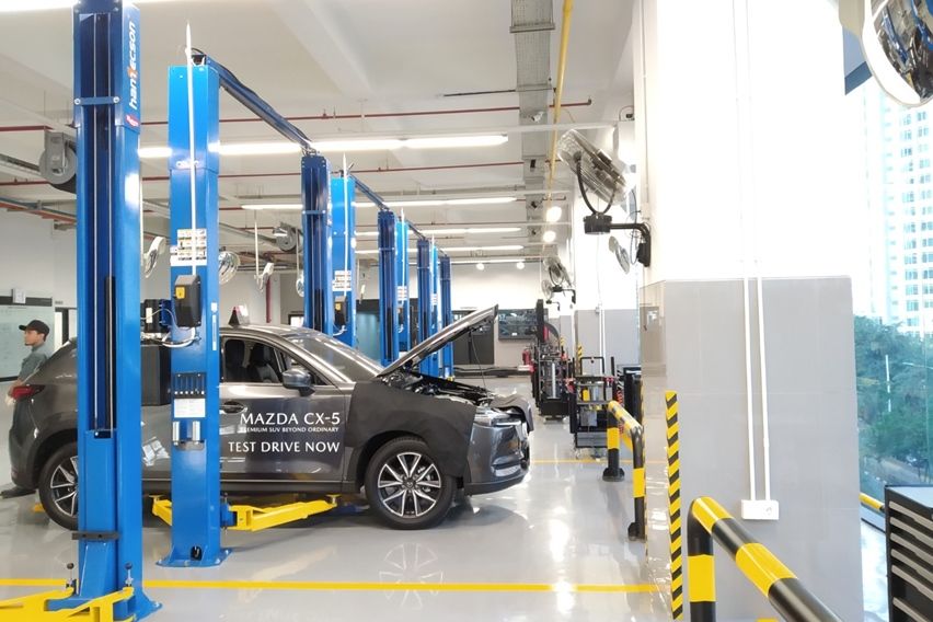 Ruang bengkel (workshop) berada di Iantai tiga dengan kesan gaya premium juga. Total ada 9 service bay yang dilengkapi peralatan canggih sesuai standar Mazda Corporation Jepang. Diler ini pun menjadi pusat pelatihan bagi seluruh mekanik dan tenaga penjual Mazdas skala nasional, yang langsung dioperasikan oleh PT Eurokars Motor Indonesia. Pre Delivery Inspection (PDI) dan area penyimpanan unit terdapat di lantai lima. Dan untuk pertama kalinya, Mazda mendirikan Mazda Certified Pre-Owned. Divisi mobil bekas yang ruang pamernya berada di ruang bawah tanah.