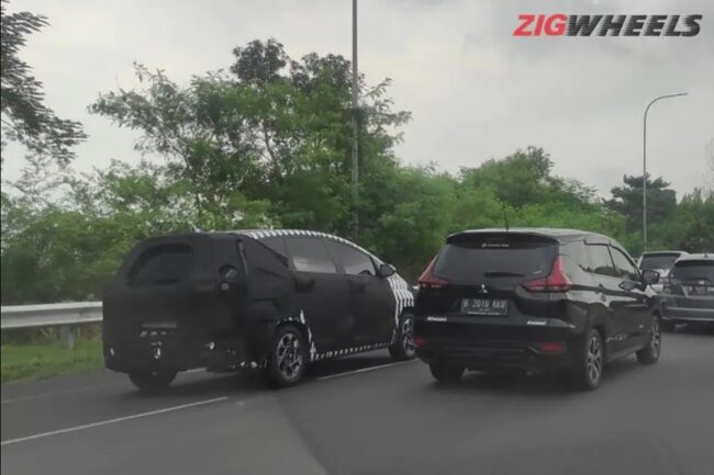Bagian front overhang tampak pendek sekali, dengan fender dibuat tak menonjol. Atap terlihat polosan tanpa panoramic sunroof. Lalu pelek berpola kelopak dwiwarna sekitar 16 inci. Kalau berdasar rumor, mobil disiapkan menempati segmen Low MPV. Namun jika dibandingkan dengan Mitsubishi Xpander di sampingnya. Ia malah tampak lebih bongsor. Baik dari segi panjang, lebar maupun tinggi. Kemungkinan mendekati dimensi Toyota Kijang Innova.